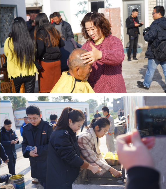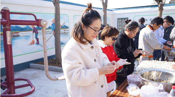 上午9時(shí),黨員們來(lái)到勝鹽村后就各司其職,奔赴在各個(gè)“崗位”上開(kāi)始忙碌起來(lái),洗菜切菜、量血壓、理發(fā)、唱越劇、包餃子,現(xiàn)場(chǎng)充滿著溫馨和諧的氣氛。