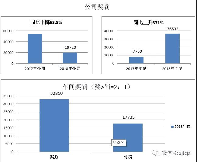 為了激勵員工時刻圍繞公司的核心價值觀,鼓勵員工奮發向上,促進企業不斷完善改進,做到獎罰分明,堅持以獎勵/處罰=2:1原則,公司制定了《公司獎罰管理制度》和《車間獎罰管理辦法》,雙管齊下,2018年相比2017年獎勵金額同比上升371%,處罰金額同比下降63.8%,違章次數同比下降69.7%,管理上有了很大的提升,數據體現如下: