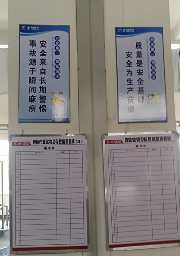 3、5月24日對車間內5S標識牌進行擺放,車間區域信息看板進行擺放并對主要負責人員講解其看板區域,價值觀標識張貼,進行5S的現場管理培訓。